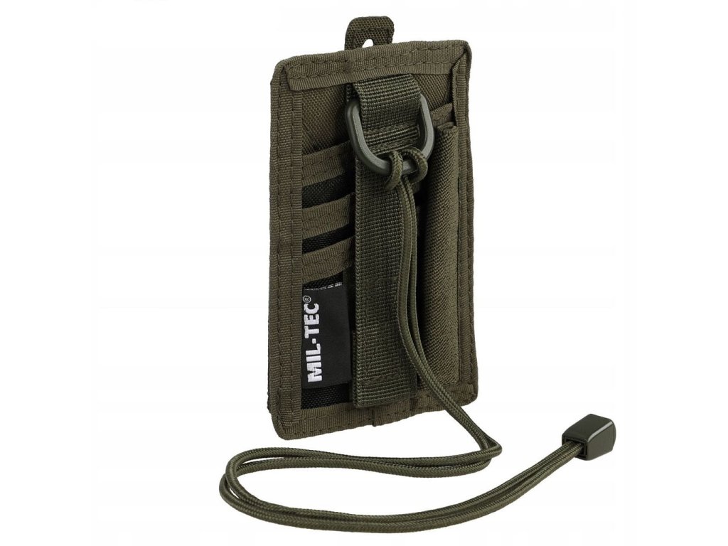 Identifikační pouzdro se šňůrkou a suchým zipem, díky průhledné části vhodné pro umístění dokladů nebo jmenovky. Rozměry - 135 x 90 x 5 mm, materiál - polyester s potahem z PVC, hmotnost 40 gramů.