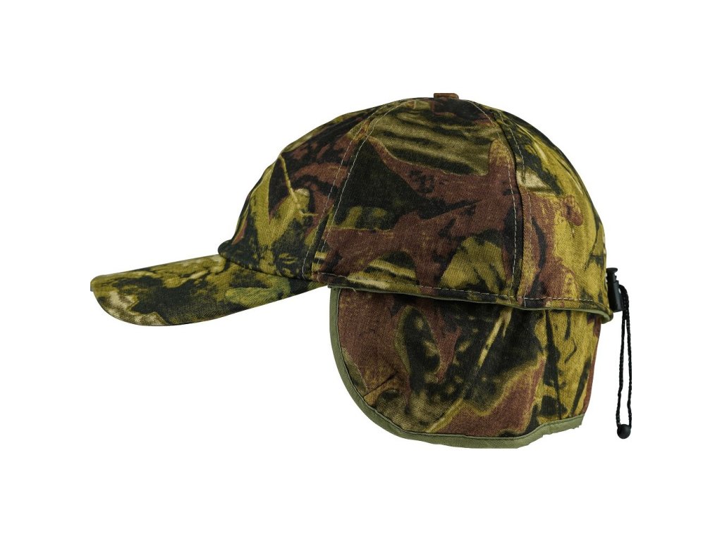 lovecká čepice s kšiltem, potisk WILDFOWL - v kšiltu zabudováno 5 LED diod (napájení 2 3V baterie), spínač v kšiltu vyklápěcí díl přes uši do chladného počasí materiál: 100% leštěná bavlna s fleecovou podšívkou