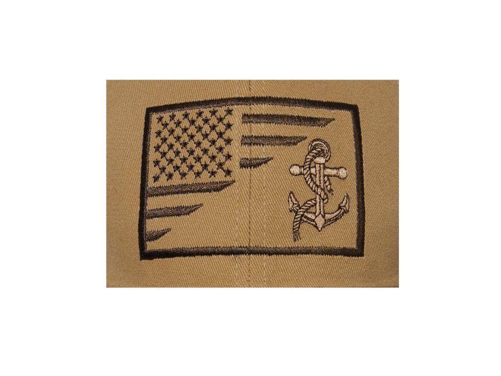 Kšiltovka s výšivkou - znakem amerického námořnictva a vlajkou USA. Univerzální velikost, nastavitelná pomocí pásku se suchým zipem. Nízkoprofilový střih. Materiál - 100 % bavlna.