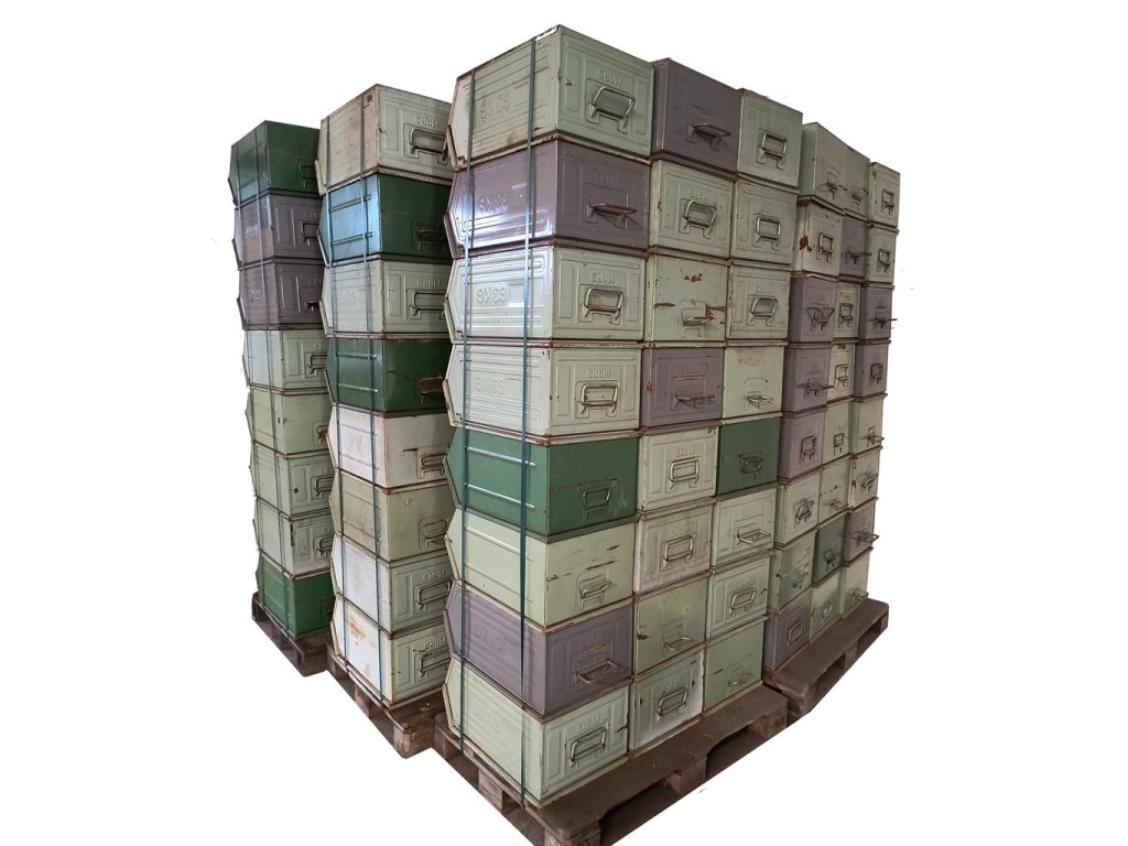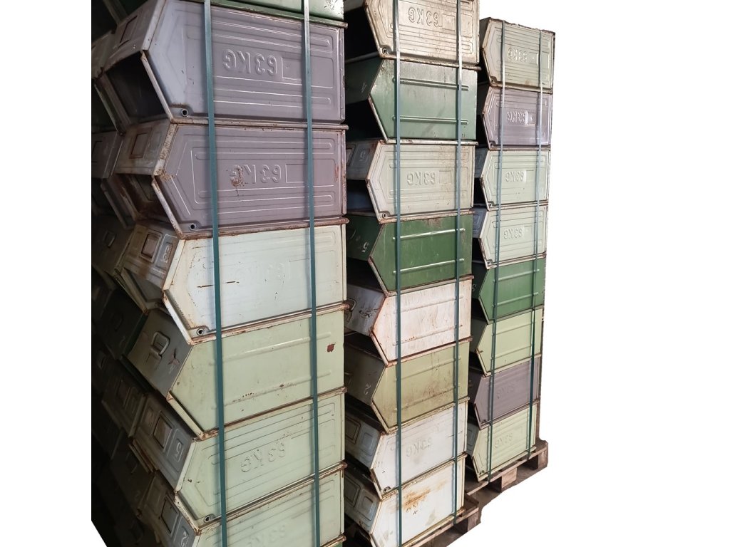 › MILITARY › Vybavení › Armádní vybavení › Bedny › Bedna plechová ukládací zkosená 63kg / 400×600×300mm použitá