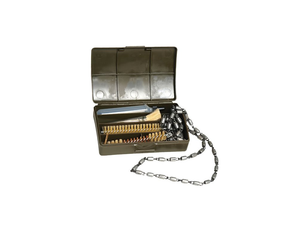 Čistící souprava (.308 Winchester, 7,62x51mm, 9 mm) vyrobená z TL.dvou kruhových kartáčů perforovaný řetěz a čistící kartáč cca 100 cm v praktické plastové krabičce. Hmotnosti: cca 160 g . Velikost: cca 13 x 9 x 3 cm.