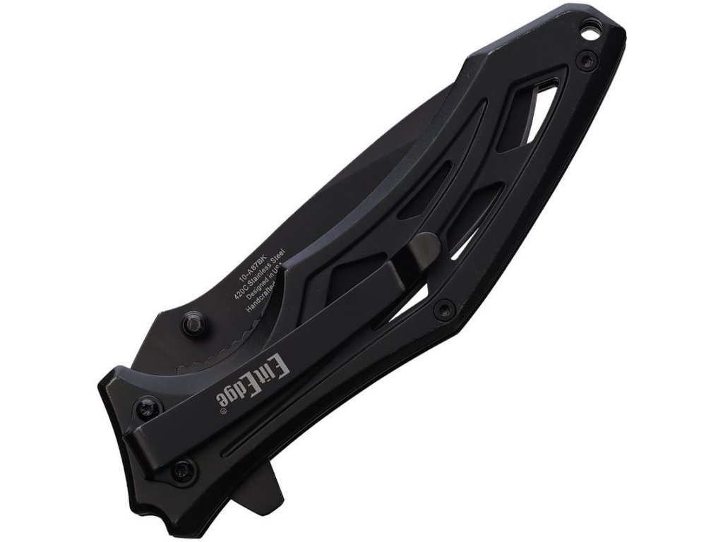 Zavírací nůž s asistovaným otevíráním a výrazně černěnou čepelí i rukojetí. Čepel nože s hladkým ostřím je vyrobená z nerezové oceli 420 s úpravou black stonewash. Rukojeť je z nerezové oceli. LinerLock pojistka.