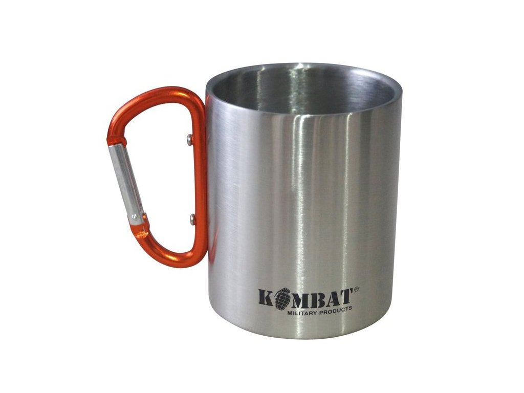 Cestovní hrnek s karabinou. Objem 330 ml, materiál - nerezová ocel, hmotnost - 120 g. Dvoustěnná konstrukce pro delší uchování horkých i studených nápojů.