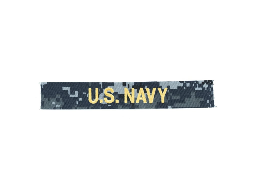 Originální nášivka vyrobená ve Spojených státech amerických. Nášivka je vhodná pro přišití na oblečení. Precizně vyšitý zlatý nápis U.S. NAVY na podkladu v maskovacím vzoru digital navy.