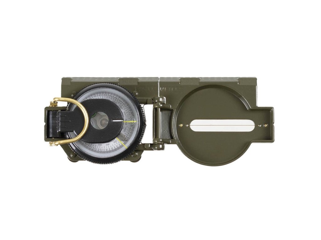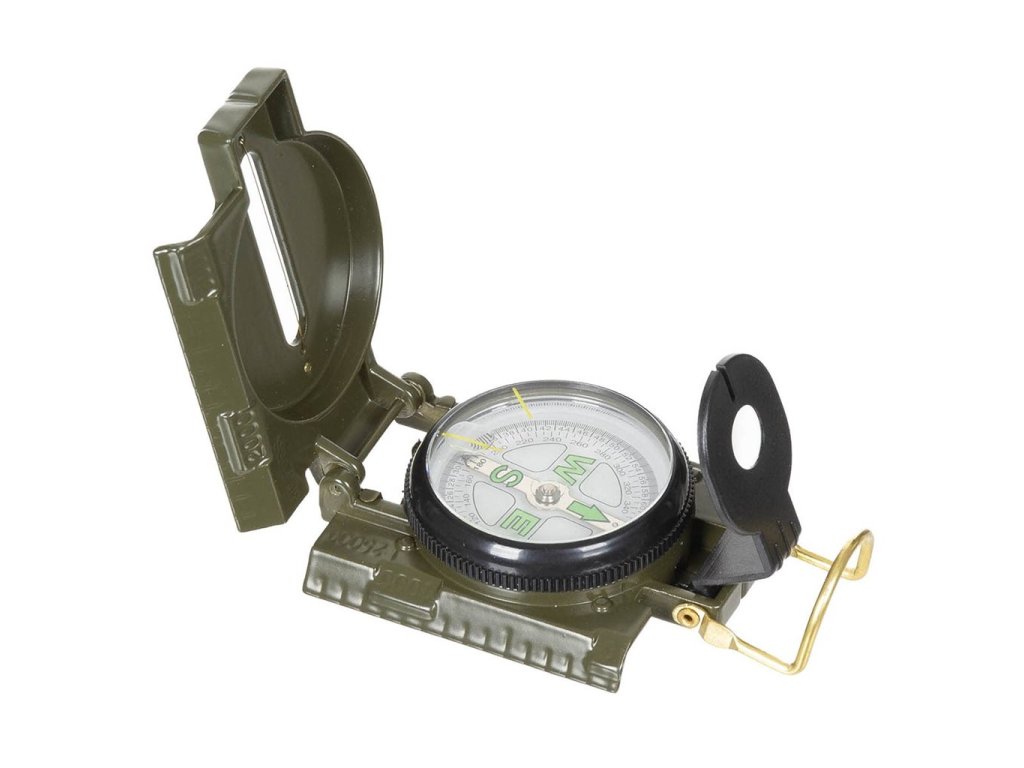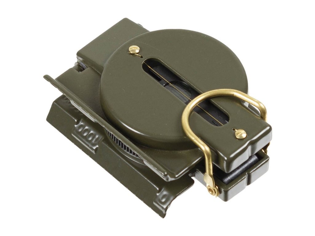 Kompas US typu. Kompas je uložen v kovovém pouzdře. Tlumený kapalinou. Přehledná růžice pokrytá fosforem. Hledáček zabudovaný v poklopu. V hledáčku zabudovaná lupa.