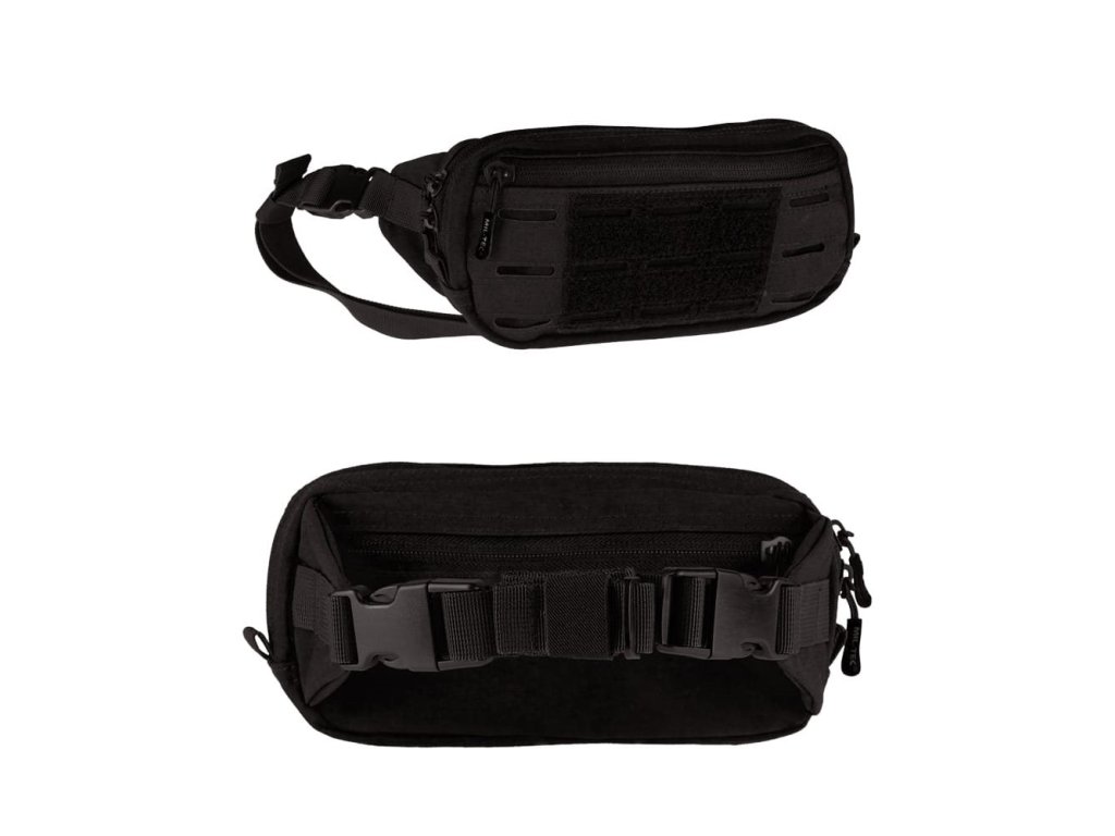 Ledvinka, v přední části s MOLLE LASER vazbou, na které jsou velcro panely. Hlavní kapsa s vnitřní síťovanou kapsou a elastickými oky, s dvoucestným zipem. Přední a zadní kapsa na zip. Rozměry - 23,5 x 6 x 12 cm.