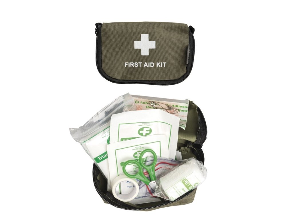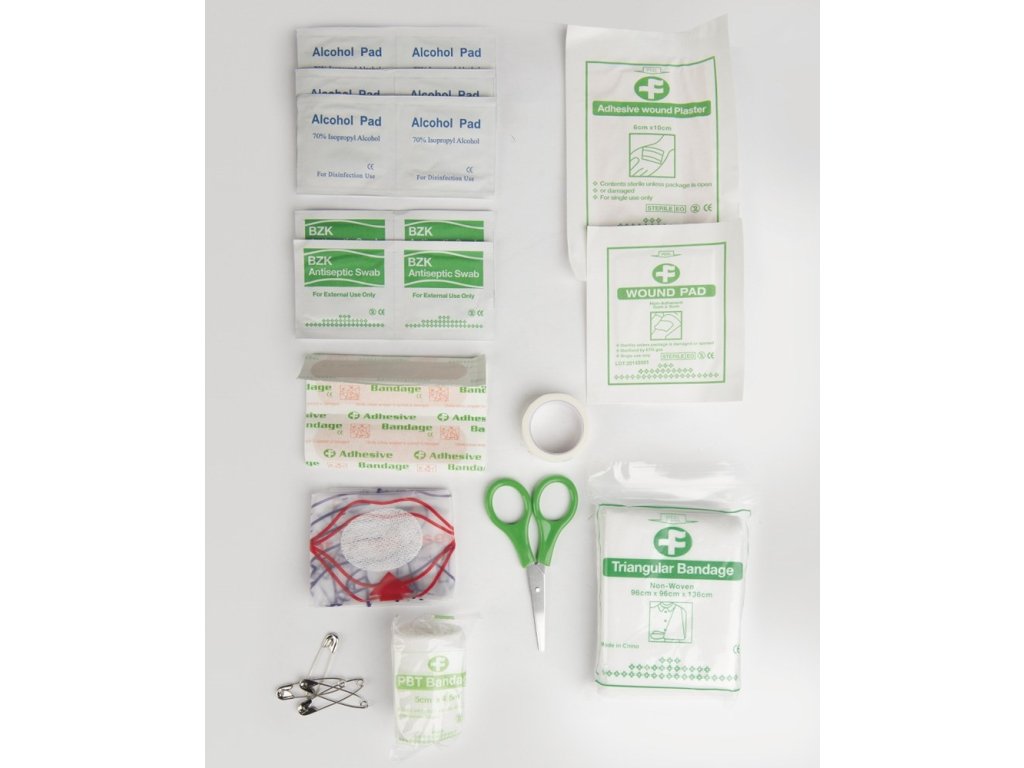 Malá kompaktní osobní lékárnička v malém pouzdru na zipVyrobeno z voděodolného Cordura 1000 Denier Nylonu. Lékárnička obsahuje: nepřilnavý polštářek 5x5cm 1x. Voděodolná náplast 5 ks /7x2cm/. Nůžky. Čistící ubrousky bez obsahu alkoholu.