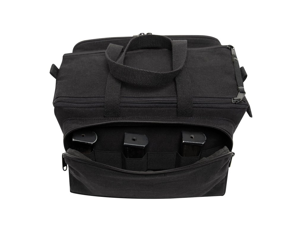 Taška vhodná pro přenášení krátké zbraně, včetně zásobníků a dalšího střeleckého vybavení. Hlavní prostor je o rozměrech 31 x 27 x 21,6 cm, kapsa na pistoli měří 30,5 x 17 x 4,4 cm. Taška ja vybavená oky pro vsunutí zásobníků.