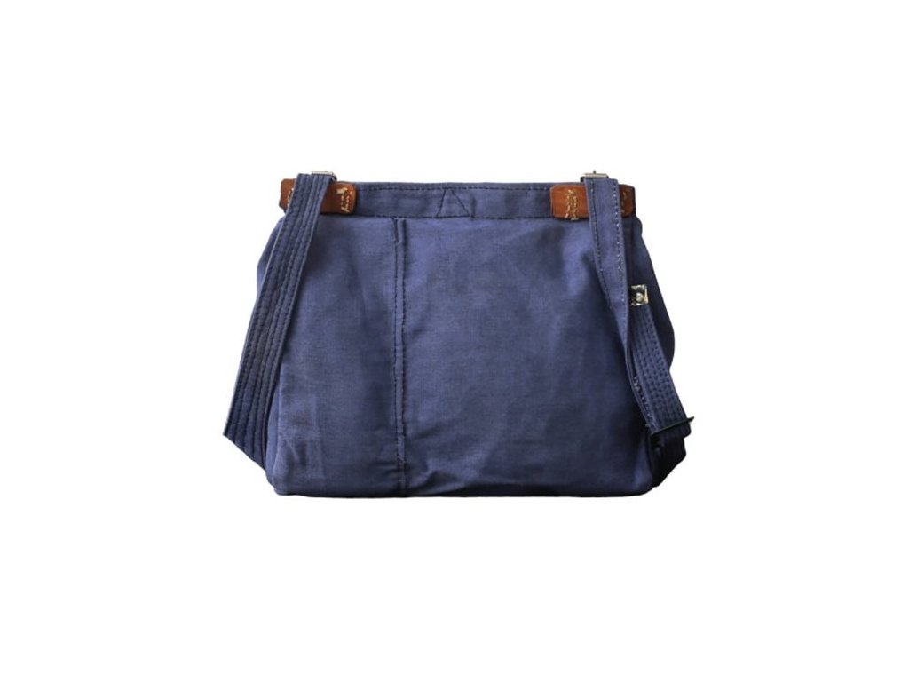 › MILITARY › Batohy, tašky › Tašky › Malé polní, chlebníky › Taška přes rameno "CHLEBNÍK" plátěná rumunská kožené popruhy MODRÁ