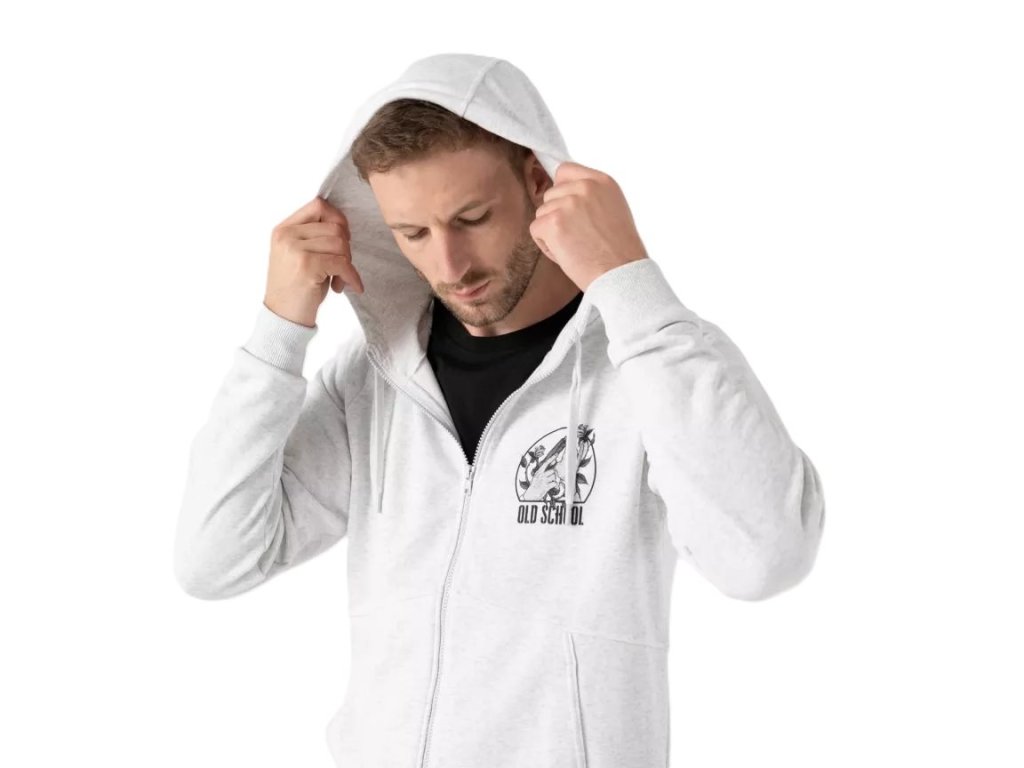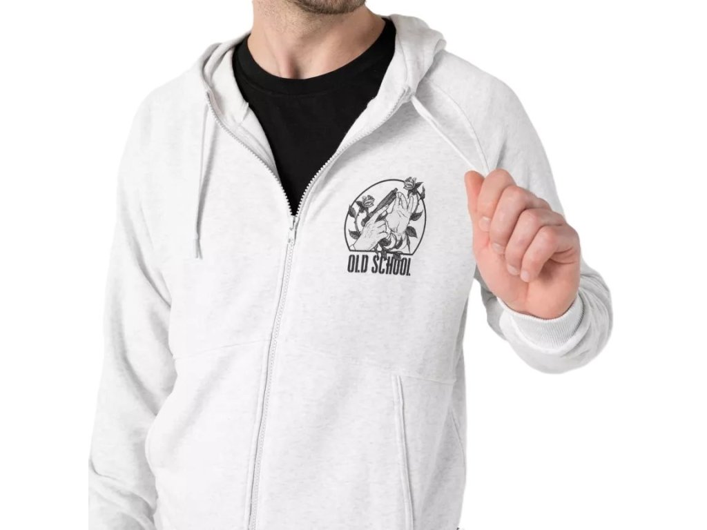 › MILITARY › Oblečení › Pánské oblečení › Mikiny, fleecové bundy › Mikiny s kapucí › Mikina OLD SCHOOL se zipem a kapucí SVĚTLE ŠEDÁ MELANŽ