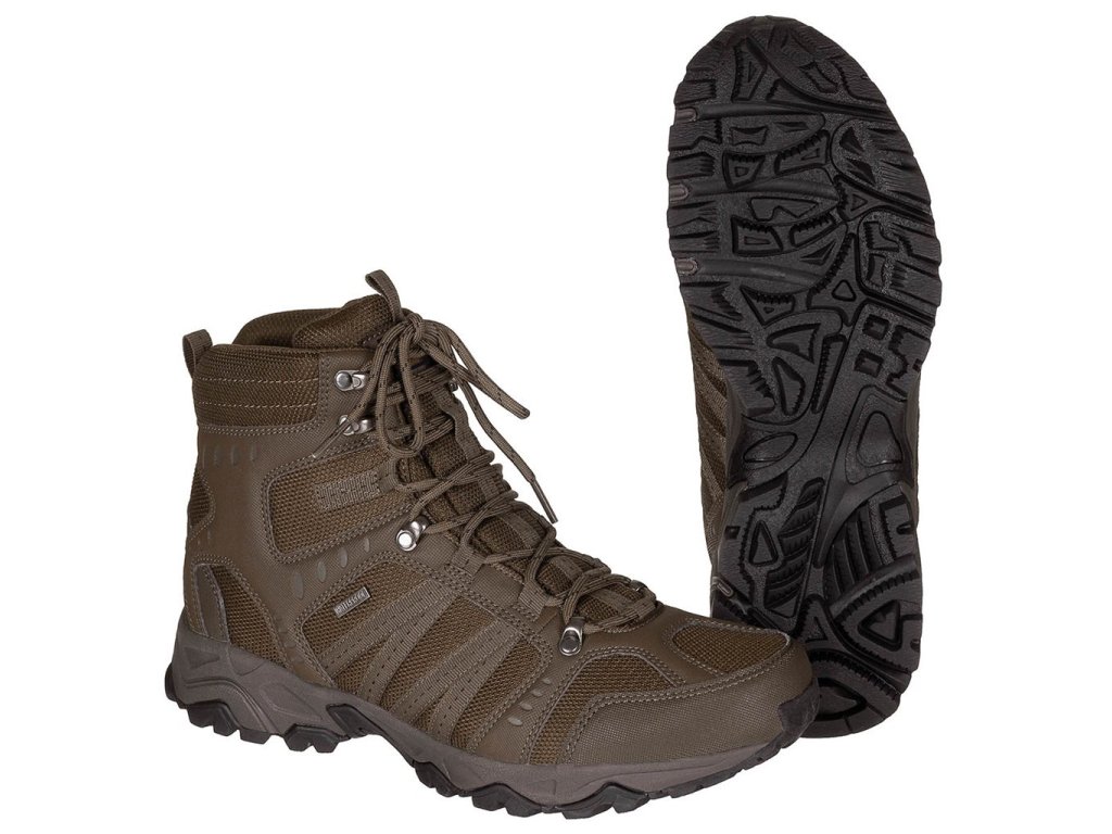 Taktické i trekové boty, které jsou vybavené membránou HBR, prostiskluzovou podrážkou a jsou ve vrchní části a na jazyku polstrované.
