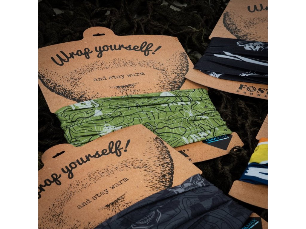 Šátek ve tvaru tunelu, který lze nosit na mnoho způsobů. Odvádí pot od těla, rychle schne, je lehký, příjemný na dotek a prodyšný. Potisk na motivy Bushcraftu a jiných outdoorových aktivit. Materiál - CoolMax.