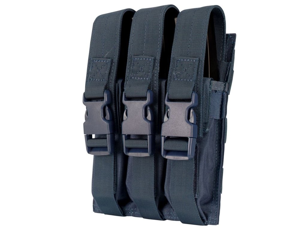 Modulární trojsumka. Na tři zásobníky do samopalu MP5. Zapínání na VELCRO a FASTEX sponu. Na zadní straně dva modulární průvleky. Rozměry: cca 21cm x 16cm. Materiál: 1000 Denier Cordura.
