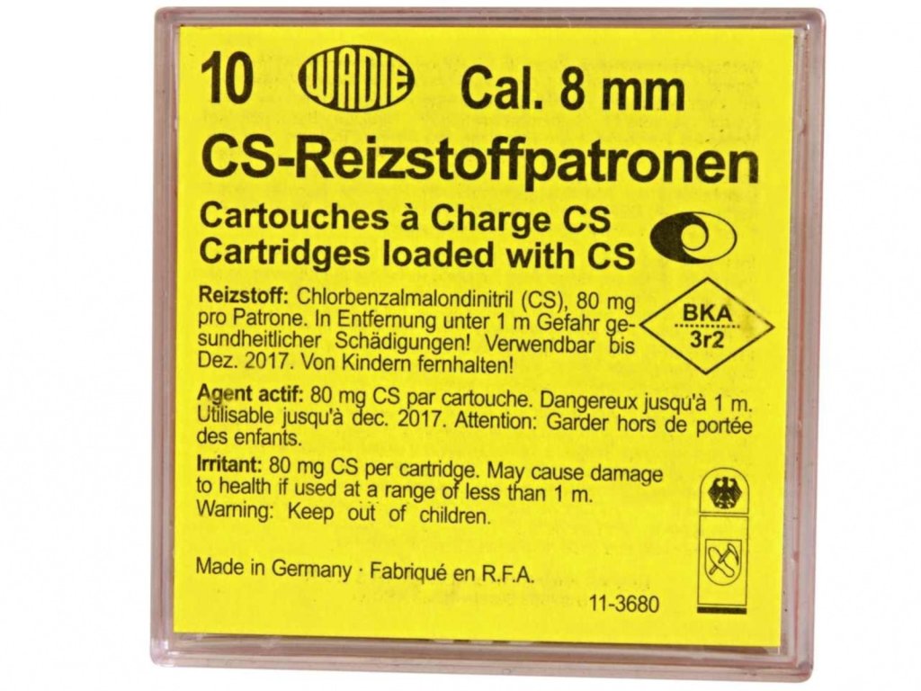 › ZBRANĚ › PLYNOVÉ PISTOLE › NÁBOJE PRO PLYNOVÉ PISTOLE › Plynové náboje CS 8mm pistole Wadie 10ks