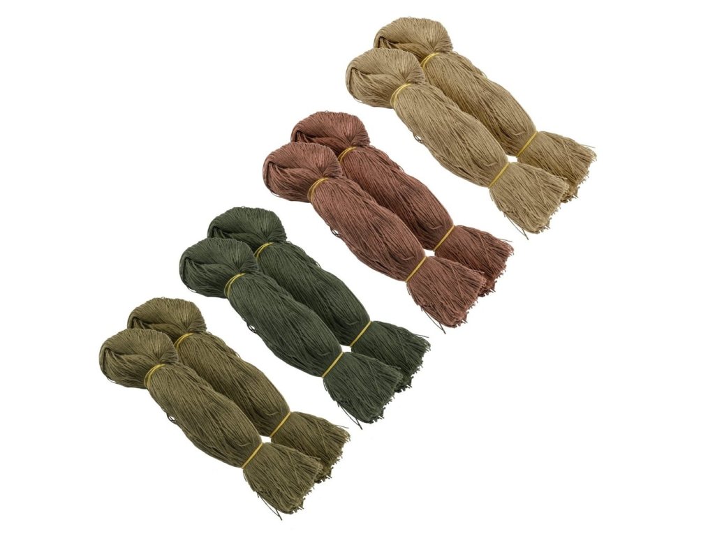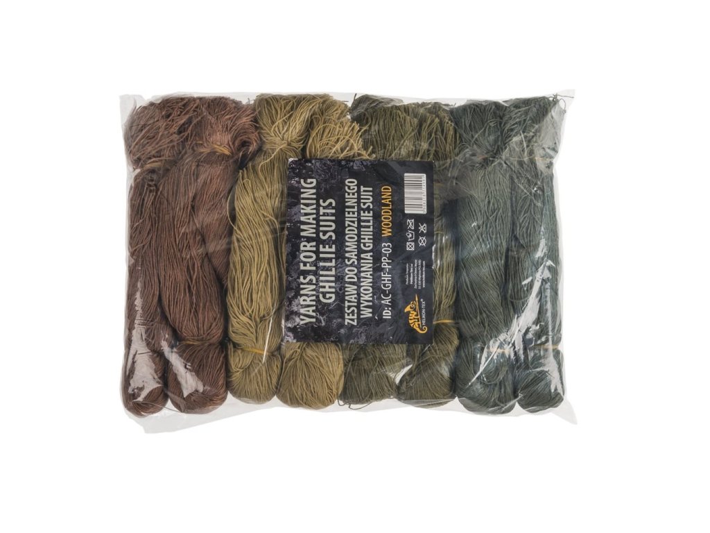 Sada osmi svazků třásní pro výrobu maskovacího obleku (hejkal) či maskování výbavy jako jsou zbraně, klobouky, batohy apod. Pro výrobu obleku je třeba několika balení, dle velikosti základu. US WOODLAND barevná kombinace.