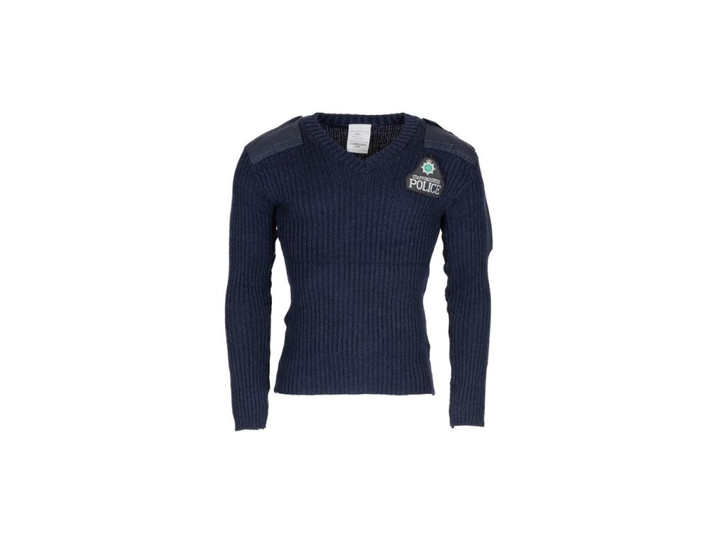 › MILITARY › Oblečení › Pánské oblečení › Pletené svetry › Svetr britský COMMANDO s nášivkou Police MODRÝ použitý