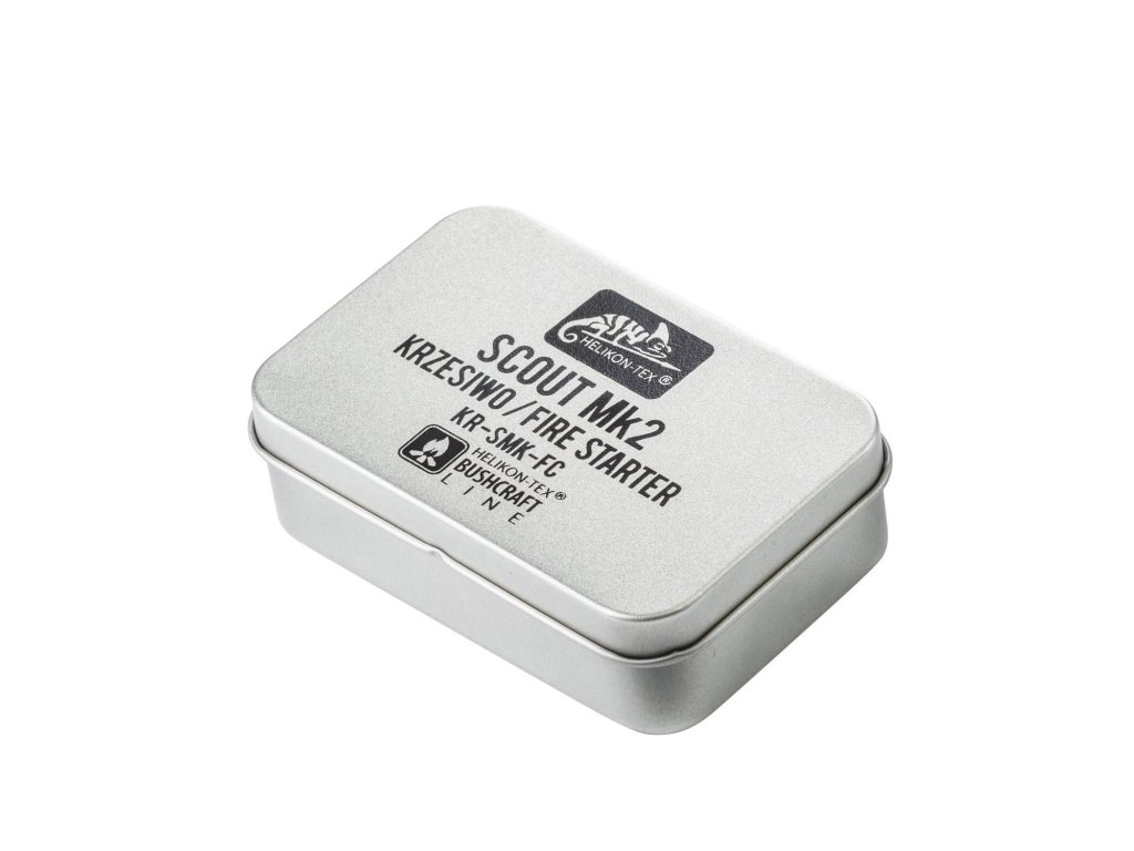 Set křesadla, podpalovacích tablet a hořlavé bavlněné vaty od renomovaného výrobce HELIKON-TEX. Celý set je uložen v odolné plechové krabičce (krabička se dá zakoupit samostatně).