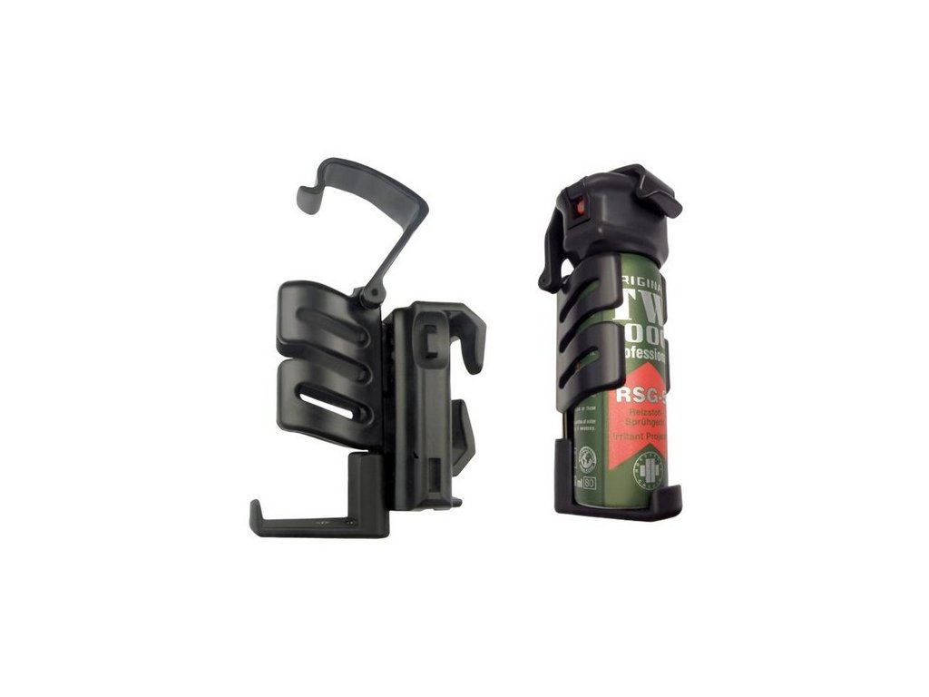 Plastové univerzální rotační pouzdro je určeno pro profesionální použití. Umožňuje velmi rychlé boční tasení spreje z pouzdra. Obsahuje též pojistku, která zajišťuje hlavici spreje pevně v pouzdře.