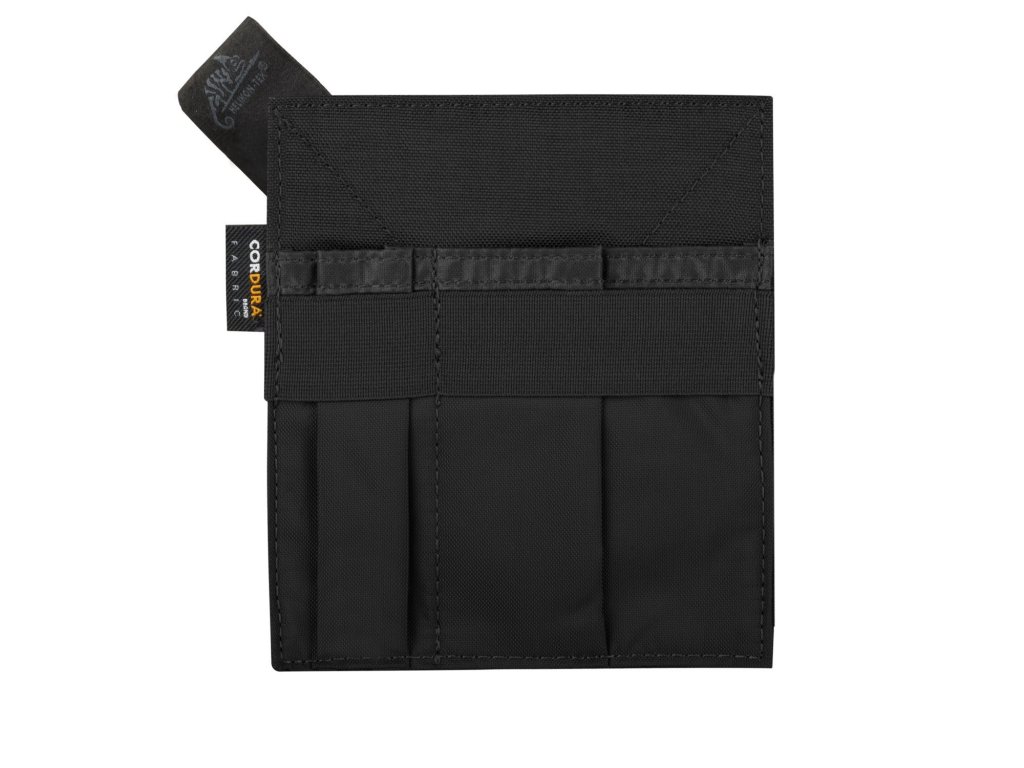 Panel, díky kterému budete mít drobnosti v tašce nebo batohu lépe uspořádané. Na zadní straně suchý zip, dva elastické popruhy, tři kapsy, materiál - 100 % nylon.