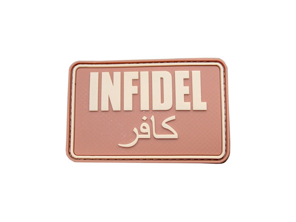 › MILITARY › Ostatní › Nášivky, odznaky › Nášivky suchý ZIP › S motivem › Nášivka INFIDEL plast velká DESERT