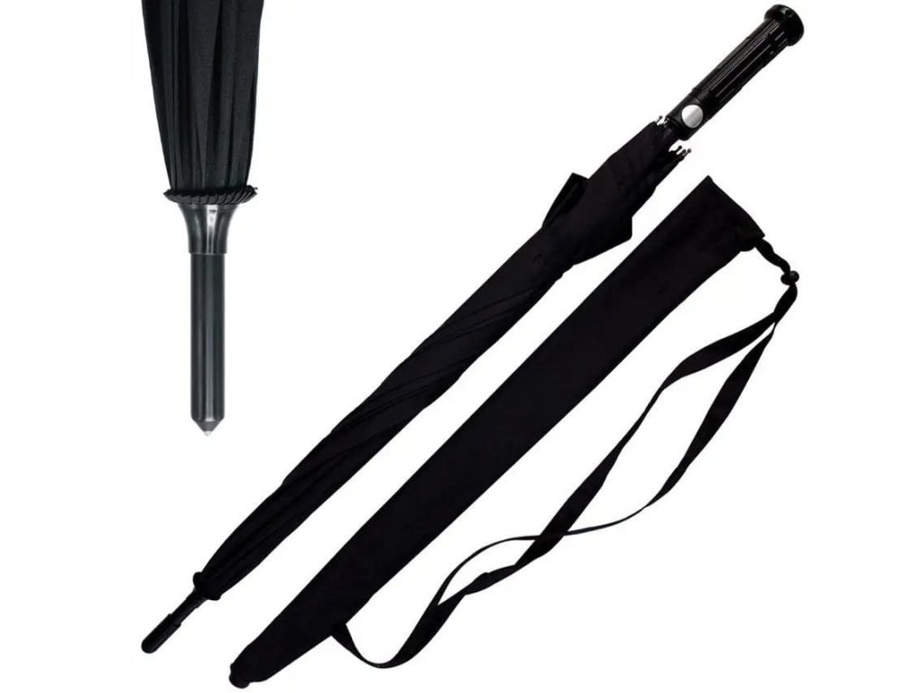 › MILITARY › Vybavení › Pobyt v přírodě › Do deště › Deštníky › Deštník skládací taktický s rozbíječem skla ČERNÝ