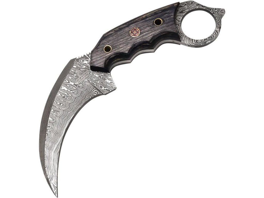 › MILITARY › Nože, náradie › S pevnou čepeľou › Hladké ostrie › Nůž FH Karambit damašková ocel s pouzdrem ČERNÝ