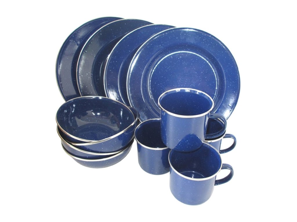 › MILITARY › Vybavení › Pobyt v přírodě › Nádobí, láhve › Nádobí, ešusy › Nádobí WESTERN smaltová sada s lemem 12 ks MODRÉ