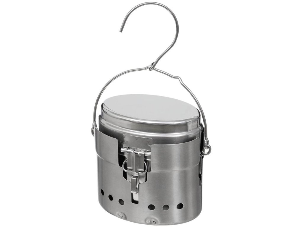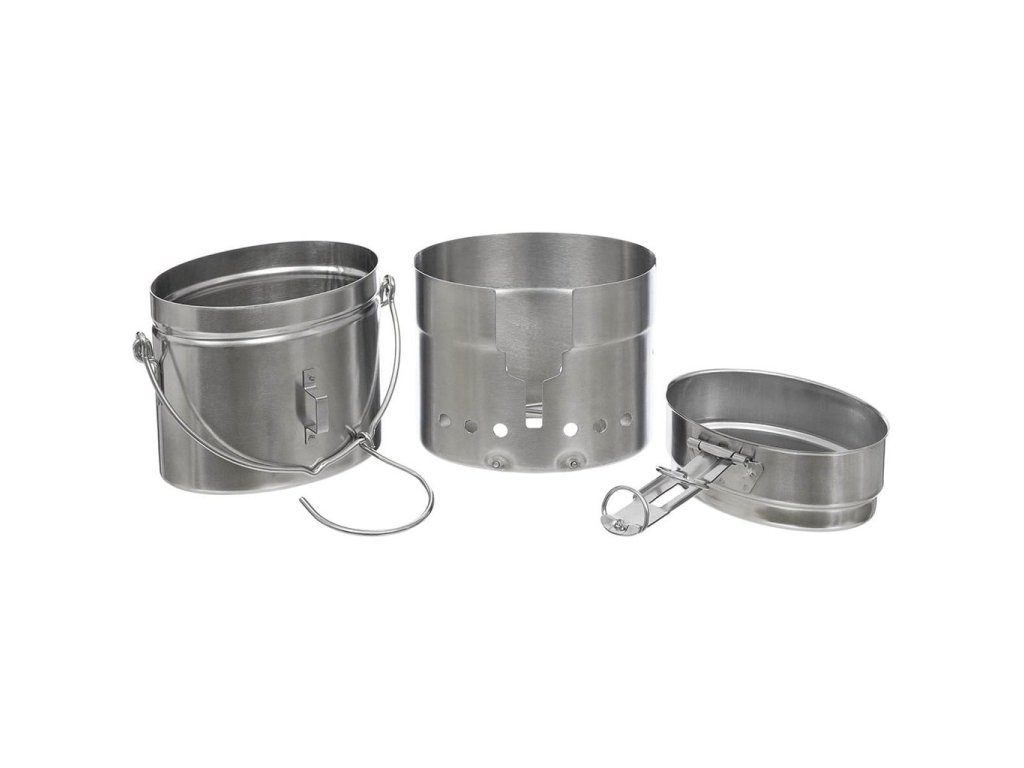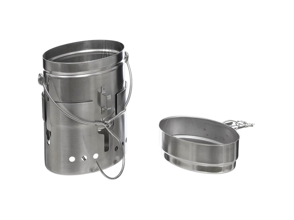 › MILITARY › Vybavení › Pobyt v přírodě › Nádobí, láhve › Nádobí, ešusy › Set na vaření ŠVÉDSKÝ /ledvina+vařič/ typ M40 NEREZ