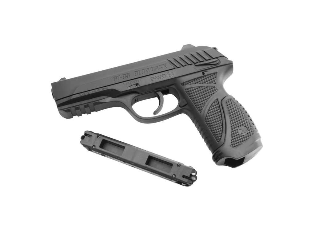 › MILITARY › Ostatní › Zbraně › Pistole CO2 › Pistole vzduchová Gamo PT 85 BLOWBACK CO2 ČERNÁ - 4,5mm SET