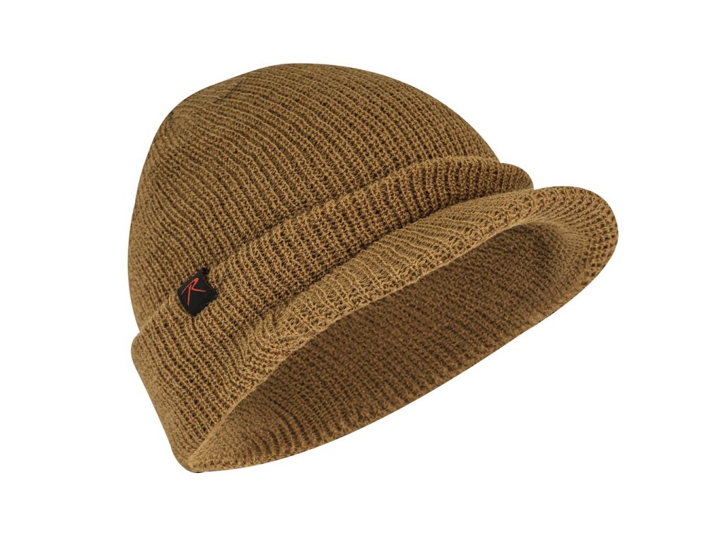 › MILITARY › Oblečení › Pokrývky hlavy › Zimní čepice › Pletené › Čepice WATCH BRIM pletená s kšiltem COYOTE BROWN