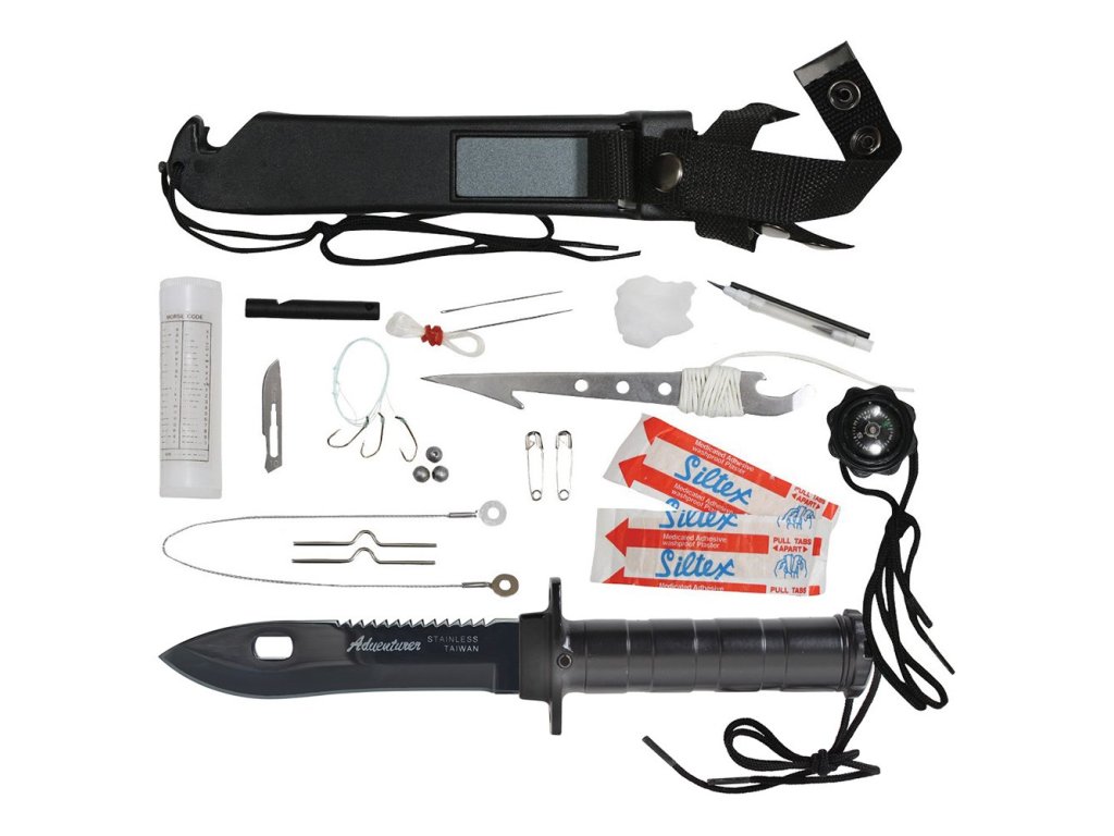 › MILITARY › Nože, náradie › S pevnou čepeľou › Survival sety › Nůž s pevnou čepelí na přežití DELUXE ADVENTURER ČERNÝ