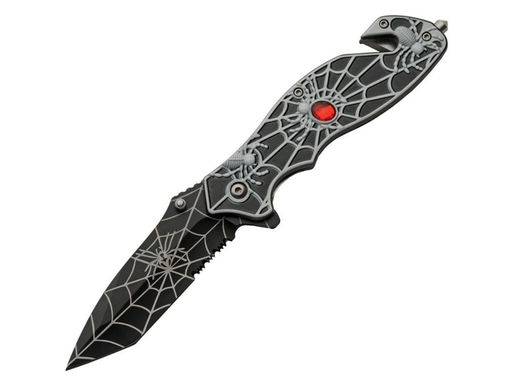 › MILITARY › Nože, náradie › Zatváracie jednočepeľové › Tanto kombinované ostrie › Nůž zavírací SPIDER s řezákem ČERNÝ