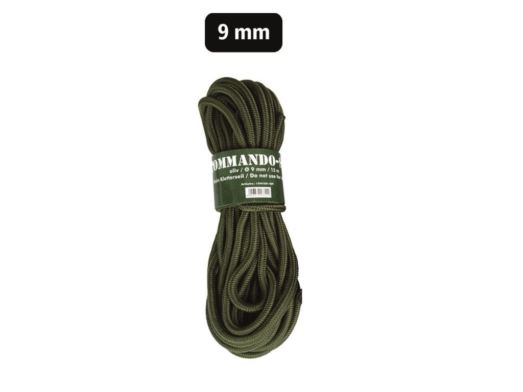 › MILITARY › Vybavení › Šňůry, spony, řemeny › Šňůry a provazy › Šňůra COMMANDO pomocná ø 9 mm / 15 m ZELENÁ