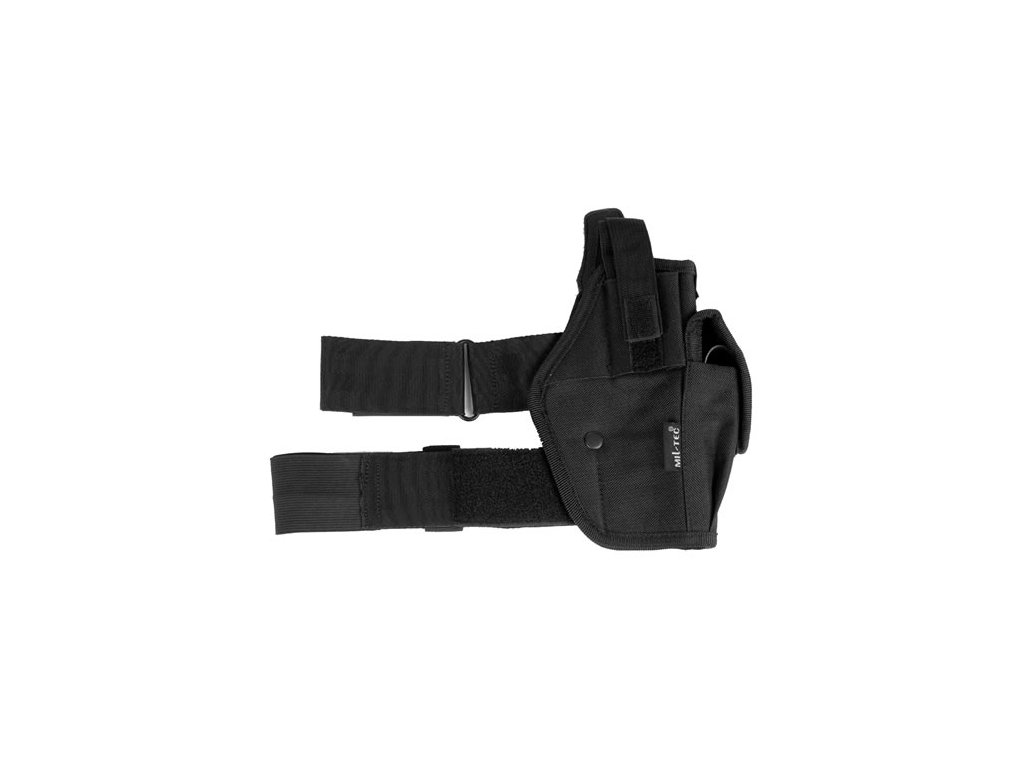 Univerzální stehenní pouzdro s našitou kapsou na zásobník. Nastavitelná délka elastického stehenního popruhu se suchým zipem. Lze nastavit délku popruhu k zavěšení na opasek. Vhodné pro všechny typy krátkých zbraní. Materiál 100 % nylon.