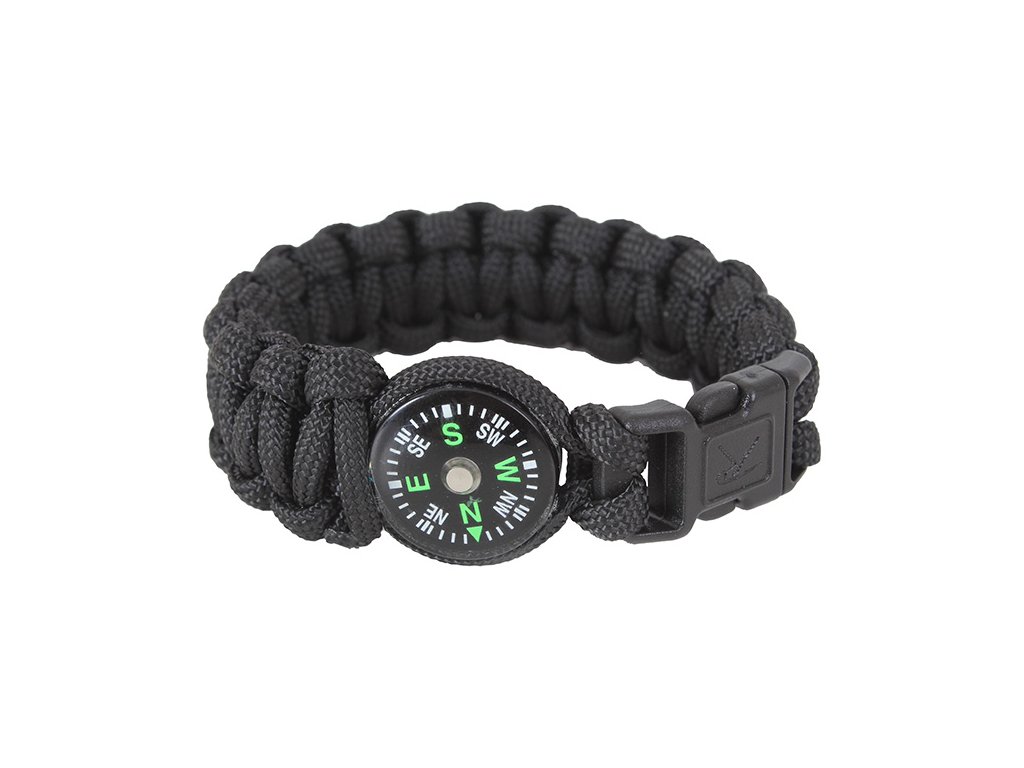 Náramek SURVIVAL PARACORD s kompasem ČERNÝ