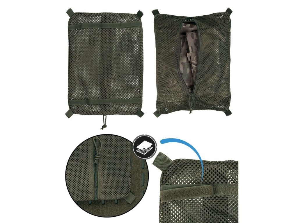 Velkou plochou kapsu od výrobce MIL-TEC oceníte především na cesty, bez problémů pojme vaše toaletní potřeby popřípadě velikostně podobné vybavení. Na zadní straně naleznete dva pruhy VELCRA, které slouží k připevnění do vnitřku batohu.