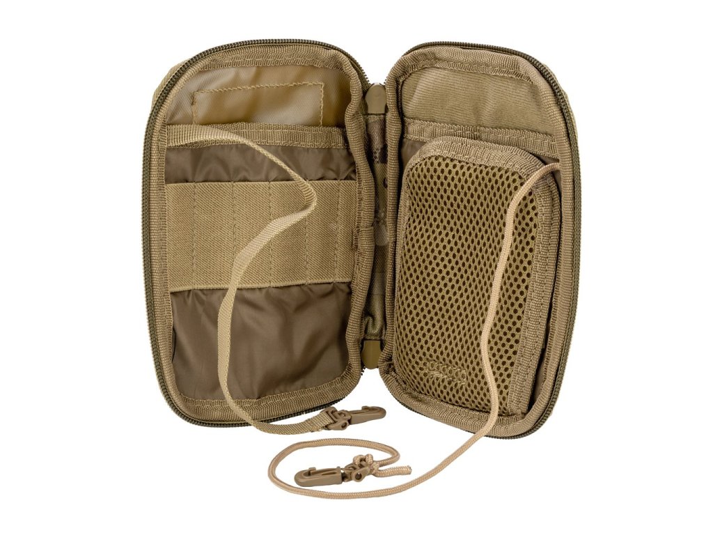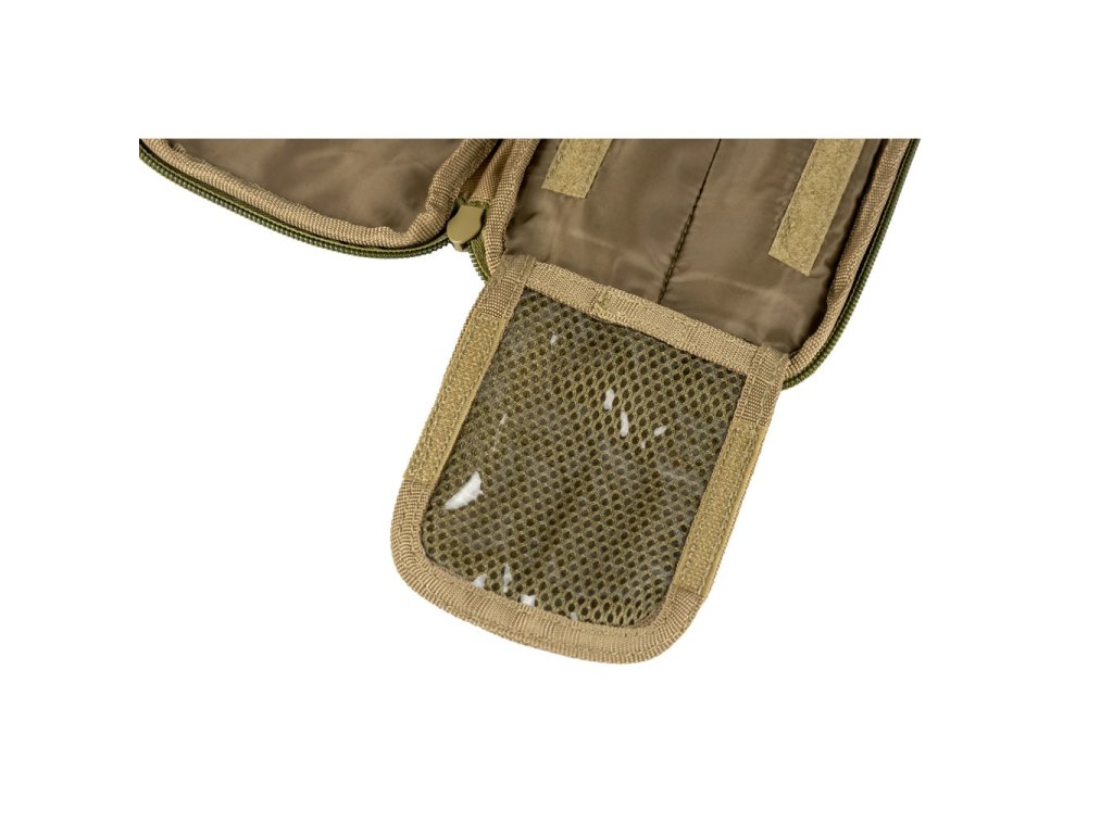 Pouzdro na zadní straně s MOLLE vazbou a madlem pro možnost nošení v ruce nebo zavěšení. 4 vnitřní kapsy, vnější síťovaná kapsa. V horní části panel se suchým zipem. Materiál - 600D Cordura.